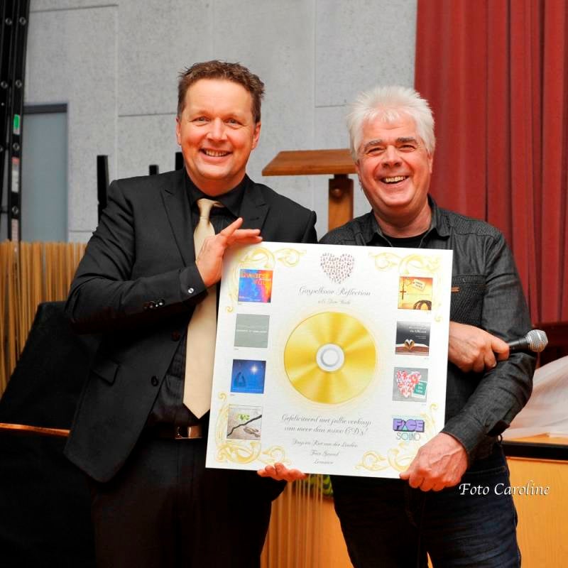 Na afloop van het presentatieconcert op vrijdag 18 november 2016 werden een aantal mensen, die zich bijzonder ingezet hadden voor het laatste project, in het zonnetje gezet. Die gelegenheid nam Joop van der Linden van http://www.facesound.nl te baat om het hele koor in het zonnetje te zetten. Hij overhandigde aan dirigent Jan Bode een gouden CD ter gelegenheid van de verkoop van meer dan 10.000 exemplaren, verdeeld over 7 verschillende CD's. Een plakkaat waar Jan Bode namens Reflection trots op is.