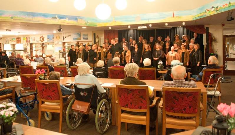 Vanavond was de aftrap van onze optredens in verzorgingstehuizen. We startten deze reeks in Zwartsluis, bij de bewoners van de verzorgingstehuis de Schans. We begonnen met een aantal nummers van onze nieuwe CD : “Deel Zijn Liefde”. Lees verder voor meer informatie en foto's.
