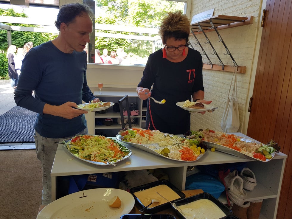 Na deze leerzame dag, was het tijd voor ontspanning. Er stond een lekkere barbecue voor ons klaar. Worstjes, hamburgers en kip, salades, stokbrood en satésaus, we kwamen niets te kort. Dit was een geslaagde koordag en we kijken uit naar de cd-opname eind juni.