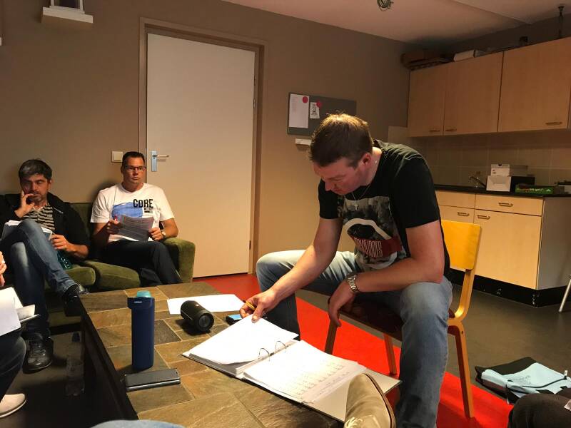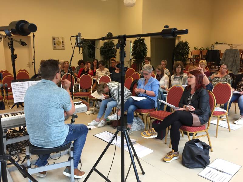 Om de puntjes nog even op de i te zetten, werd er een koordag georganiseerd. Zaterdag 26 mei was het zover. ’s Morgens om half tien druppelden de koorleden binnen voor een lekker bakje koffie met cake of koek. Om 10 uur gingen we van start.